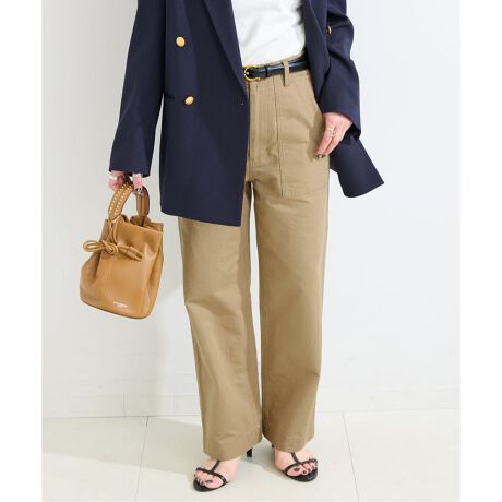 着古したような雰囲気ある加工が魅力の綿素材。ほどよくルーズな穿き心地ながら、ダボ付かず女性らしく穿けるストレートシルエット。ミリタリーテイストですが、カジュアルすぎず綺麗目スタイリングとも相性抜群、シーズンレスで活躍します。