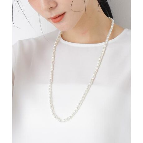 上品さと程よい華やかさを兼ね備えたパールネックレス。パール特有の凹凸感が一粒一粒に表情を与え、かしこまりすぎない柔らかな印象を演出。軽やかなフェイクパール素材で、長時間の着用でも快適にお使いいただけるアイテムです。