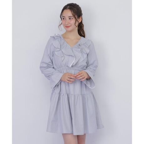 ストライプのシャツ地を使用した清涼感のあるミニワンピース。フリルの端についたピコレースがポイント。ウエストゴム仕様なので、かぶりで着用でき、着心地も良いデザイン。ジャケット合わせもおすすめ。肌寒い時期は薄手のタートルネックと合わせたり、ロングブーツコーデも◎ジャストな時期にはソックスとCAP合わせでカジュアルに外して着るのもおしゃれでおすすめです。※撮影時照明の関係により、色味が違って見える場合がございます。またパソコン・スマートフォンなどの環境により、若干製品と画像のカラーが異なる場合もございます。予めご了承ください。商品の色味は、商品単品画像をご参照下さい。※商品画像はサンプルのため、色味やサイズ等の仕様に変更がある場合がございますので、予めご了承ください。
