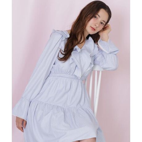 ストライプのシャツ地を使用した清涼感のあるミニワンピース。フリルの端についたピコレースがポイント。ウエストゴム仕様なので、かぶりで着用でき、着心地も良いデザイン。ジャケット合わせもおすすめ。肌寒い時期は薄手のタートルネックと合わせたり、ロングブーツコーデも◎ジャストな時期にはソックスとCAP合わせでカジュアルに外して着るのもおしゃれでおすすめです。※撮影時照明の関係により、色味が違って見える場合がございます。またパソコン・スマートフォンなどの環境により、若干製品と画像のカラーが異なる場合もございます。予めご了承ください。商品の色味は、商品単品画像をご参照下さい。※商品画像はサンプルのため、色味やサイズ等の仕様に変更がある場合がございますので、予めご了承ください。