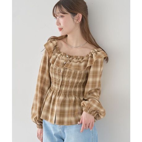シャーリングが描く、やさしいフェミニン感シャーリングの立体感が美しく、自然と体に沿うシルエットが魅力です。程よくフィットしながらも締め付け感が少ないため、長時間の着用でも心地よく過ごせます。チェック柄は主張しすぎず、コーディネートに取り入れやすいデザインです。フリルのあしらいが顔まわりを華やかに見せ、さりげなく大人可愛い印象をプラスします。デニムやスカートなど、合わせるボトムを選ばず着回し力が高いのも嬉しいポイントです。1枚で着映えし、レイヤード次第で季節を問わず活躍します。カジュアルにもきれいめにもなじみ、毎日のスタイリングをやさしく格上げしてくれる一着です。透け感[なし]
