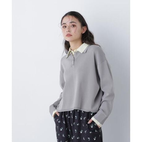 今季トレンドのシャツレイヤード風のニットプルオーバー。2枚重ねたダブルカラー(襟)がポイントです。襟と袖口に異素材をドッキングしており、シャツを重ね着しているような仕上がりに。襟のボタンを開けると、首元に抜け感を出した着こなしも楽しめます。ゆるっとしたシルエット感とショート丈なので、カジュアルパンツ合わせがおすすめです。<詳細>仕様・前ボタン裏地・なし透け感・なし / 光沢・なし / 伸縮性・あり※モデルの着用画像の場合、光の当たり具合により、実際の色味と異なって見えることがございます。色味は、商品単体の画像をご参照ください。