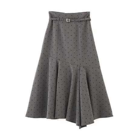 ハイウエストで腰回りすっきりシルエットのマーメイドスカート。歩くと裾のフレアがキレイに揺れるように、切り替えしはたっぷりフレアを入れました。細ベルトでウエストマークして細見えが叶います。2026 SSトレンドのドットの色展開が新鮮です。※撮影時照明の関係により、色味が違って見える場合がございます。またパソコン・スマートフォンなどの環境により、若干製品と画像のカラーが異なる場合もございます。予めご了承ください。商品の色味は、商品単品画像をご参照下さい。※商品画像はサンプルのため、色味やサイズ等の仕様に変更がある場合がございますので、予めご了承ください。