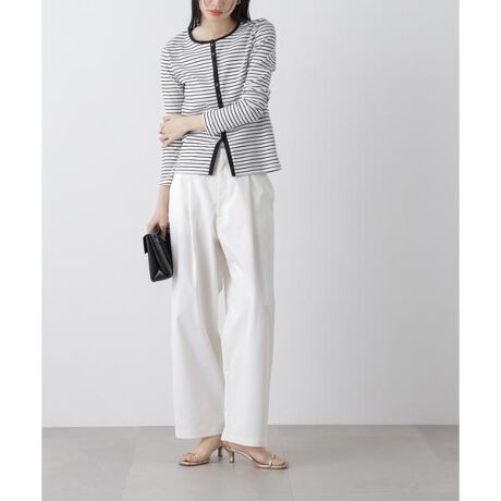 きれいめからカジュアルまで、幅広いスタイルを楽しめる大人な印象のタックパンツ。ややカーブを描くシルエットで、太すぎず細すぎない絶妙なバランスに仕上げ、通勤にも使いやすい一本。スラックスのようなきちんと感がありながら、デイリーに取り入れやすく、オンオフ問わず活躍します。