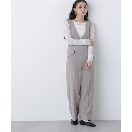 ウエストラインをすっきり見せてくれるキレイめな印象のオールインワン。抜け感のあるVネックですっきりとした印象を演出し、お持ちのインナーとのレイヤードでコーディネートが完成します。脇ファスナーを開けて、襟ぐりから着脱できる仕様。裏地がなく軽い着心地も魅力です。<素材>さらっとしたタッチのフラットな素材を使用しています。<詳細>仕様・左ファスナー裏地・なし透け感・なし / 光沢・なし / 伸縮性・なし生地の厚さ・普通※モデルの着用画像の場合、光の当たり具合により、実際の色味と異なって見えることがございます。色味は、商品単体の画像をご参照ください。