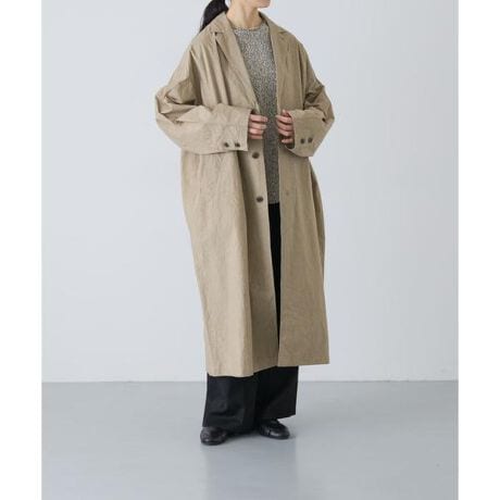 春先に取り入れたい、生地にこだわったコートが届きました。コットンの素朴なタッチに加え、細やかなシワ感・奥行きが表現されています。シンプルながらも存在感のある着こなしを叶えるアイテム。程よくハリがあり、ゆとりがありつつどこかスッキリとした雰囲気もあわせ持っています。無駄をそぎ落としたシンプルなデザインは、インナーを選ばす着まわし力も抜群。季節の変わり目のライトアウターとしてもおすすめです。軽い着心地なので重さが気になりにくいのも嬉しいポイント。