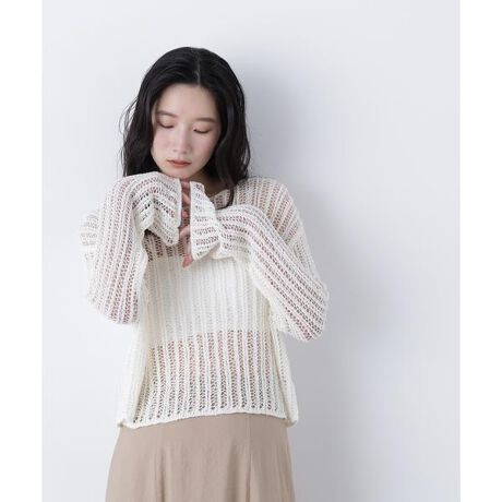ハイウエストボトムスと相性が良い、透かし編みのクロップド丈ニット。軽やかな素材感で重ね着しやすく、春先から初夏まで活躍してくれます。<素材>表情のある異なる質感の糸を組み合わせた編地です。<詳細>仕様・開閉なし裏地・なし透け感・あり / 光沢・なし / 伸縮性・あり生地の厚さ・普通※モデルの着用画像の場合、光の当たり具合により、実際の色味と異なって見えることがございます。色味は、商品単体の画像をご参照ください。