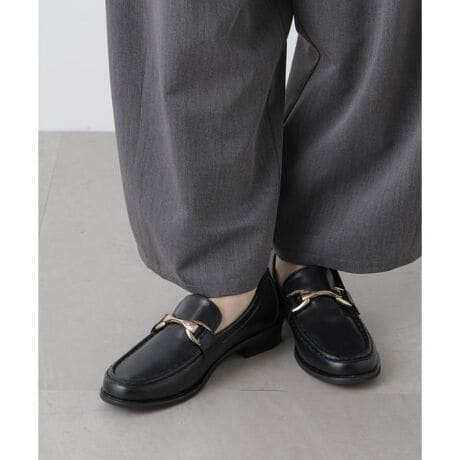 艶感のあるフェイクレザーと、ビット金具が上品な雰囲気の大人ローファー。トレンドに左右されないトラッドなデザインで通勤から休日まで幅広いスタイリングに対応。シーズンレスで活躍し、長く愛用できる一足です。