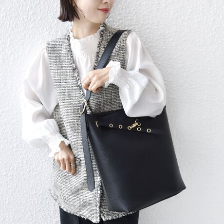 ハトメベルトデザインがさりげないアクセントになり、シンプルながら程よい存在感があります。