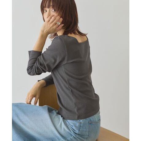 スクエアネックとクルーネックの前後2WAY仕様のリブプルオーバー。顔周りをすっきり見せるスクエアネックと、程よく開いたクルーネックを気分やスタイリングで使い分けられます。程よいゆとりと高い伸縮性で着心地がよく、ハリ・コシのある透けにくい素材を使用。ワイドパンツとのメリハリのある着こなしはもちろん、ワンピースのインナーとしても重宝する一枚です。※モデル着用画像は、光の当たり具合で色味が違って見える場合がございます。※お使いのモニター環境によって商品の色味が違って見える場合がございます。