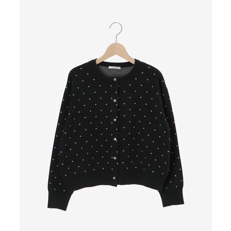 ダブルジャガード編みで表現したドット柄がポイントのシンプルなクルーネックカーディガン。