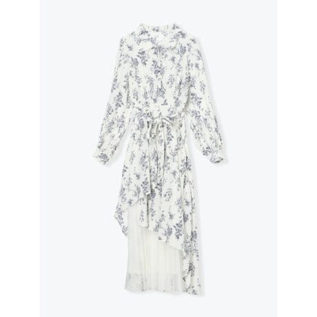 異素材アシンメトリープリーツワンピース