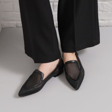 メッシュ×レザー調のコンビで、春夏らしい透け感と抜け感が魅力のローファー型。