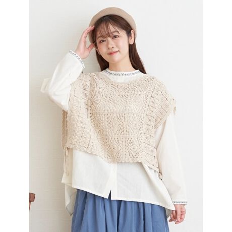 [型番:26410701096]華やかさと大人っぽさを兼ね備えたクロシェ柄編みベスト。異なる編地切替の程よい透け感が女性らしさをプラスします。さっと羽織れるリラックス感のあるポンチョ風デザインが魅力的。いつものコーデに重ねるだけで、洗練された雰囲気に仕上げます。Hare no hi/ハレノヒ