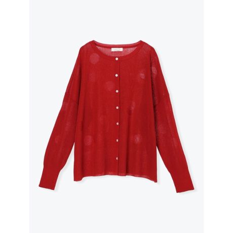 [型番:26410701202]ジャガードで再現されたドット柄が可愛らしさを演出するカーディガン。ゆったりとしたドロップショルダーで、こなれた印象を与えます。丸みのあるクルーネックがやさしい雰囲気をプラス。季節の変わり目のお出かけシーンに大活躍してくれるアイテムです。Hare no hi/ハレノヒ