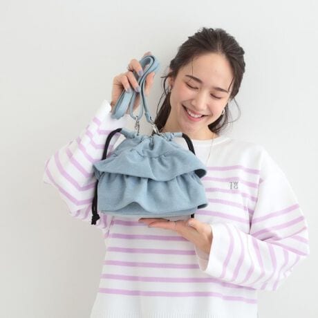 [型番:C7005051]【デザイン】デニム素材を使用した巾着バッグです。前面は2段フリルにして、コロンとしたかわいらしい印象に仕上げました。【仕様】・ポケットなし※照明の関係により、実際よりも色味が違って見える場合があります。また、パソコン・スマートフォンなどの環境により、若干製品と画像のカラーが異なる場合もございます。重量:約275g