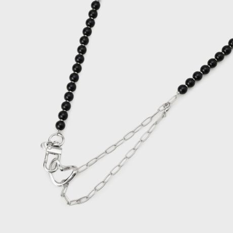 スタイリッシュなチェーンと黒ビーズを組み合わせた、トレンド感あふれるネックレス。