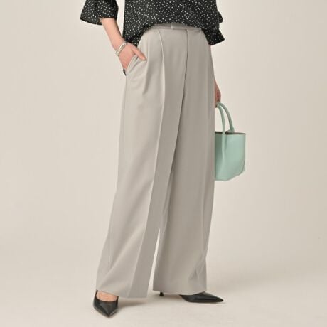 腰周りには余裕をもたせつつ、裾に向かって程よく広がるワイドシルエットが脚を長く見せてくれます。