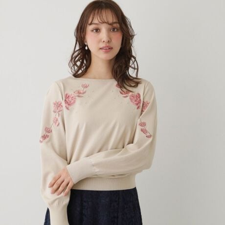 華やかなフラワー刺繍が目を惹くハイゲージニットプルオーバー。