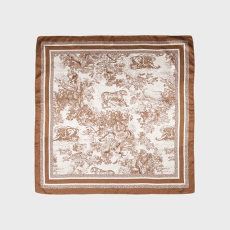 上品で華やかなアートプリントが施されたスカーフ。