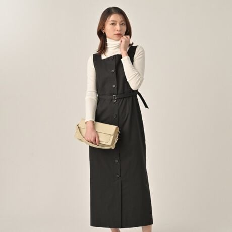 ナローシルエットとフロントの前開き見せボタンデザインは、身体のラインをすっきり見せてくれます。