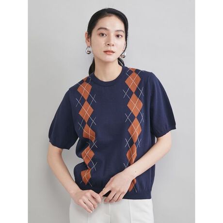 トレンド感たっぷりのアーガイル柄が映える、長いシーズン楽しめる一枚です。