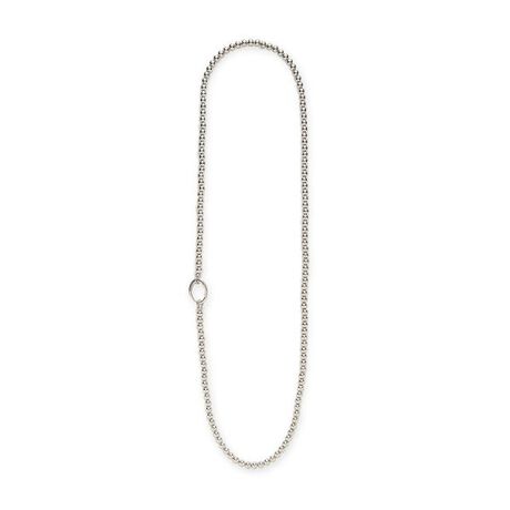 1本で重ね付けをしているかのようなアレンジが楽しめる、ロングタイプのネックレス。