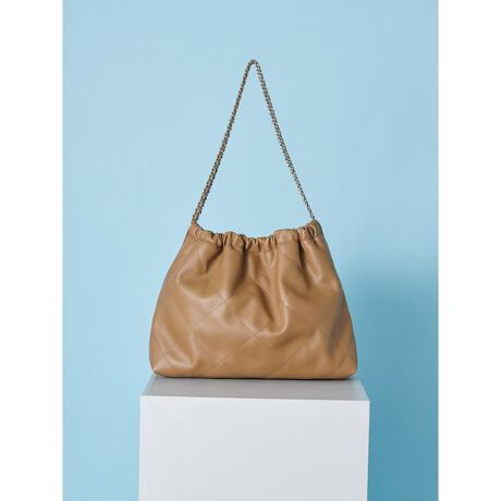女性らしくも、モードさも演出できる、キルティングのチェーンバッグ。