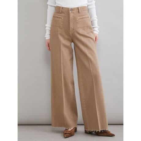 ステッチワークが印象的な玉縁ポケットを前後に施し、ディテールにトレンドであるボーホームードをプラス。