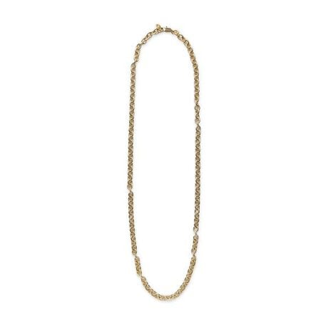 スタイリングの鮮度を一気にアップさせてくれる、存在感のあるチェーンデザイン。コロンとした丸いカンが組み合わさった、立体的なデザインです。