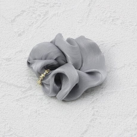 サテン生地にストーン付きのリングがついた大人デザインのシュシュ。