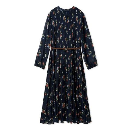 リュクスな花柄プリントに、細やかなムードの凝ったプリーツ加工を施して、流れるような動きのある一枚に仕上げています。