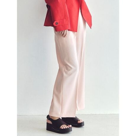 ウエストゴムでイージーなはき心地ながら、タックデザインですっきりとしたシルエットに仕上げた万能パンツです。