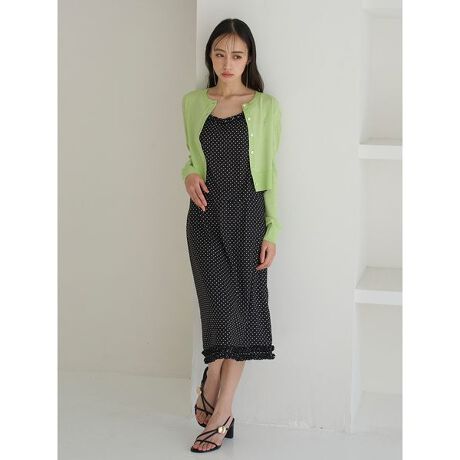 程よいシアー感のあり艶ややかなサテンライクな生地を使用してお作りしたミディ丈のスカートです。ややローウエストのナローシルエットでリラクシーな雰囲気でお作りしました。共布のフリルをすっきりとヘムラインにあしらっているのがポイント。ウエスト位置にはデザインで、パイピングコードを挟み込んでいます。共布のフリルトリムキャミソール(SWFP261258)とセットアップコーデもおすすめ。その他、シンプルなニットカーディガン(SWNT261185)やクロップドシャツ(SWFB261182)合わせもおすすめです。