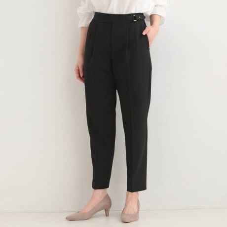 ウエストのダブルベルトデザインがポイントのテーパードパンツ。