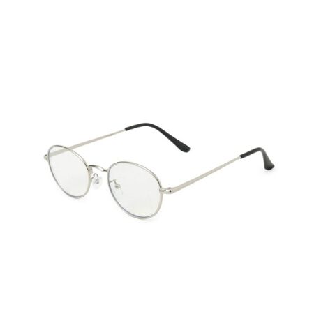 シャープなメタルフレームを使ったオーバルデザインの伊達メガネ。