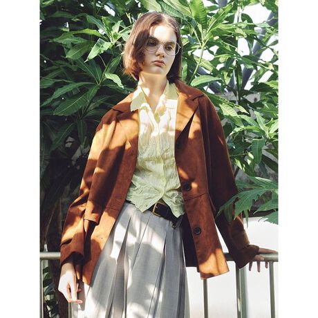 リッチな肉感と、肌ざわりのよい起毛感で、リアルスウェードのような見た目と質感を実現したジャケットです。