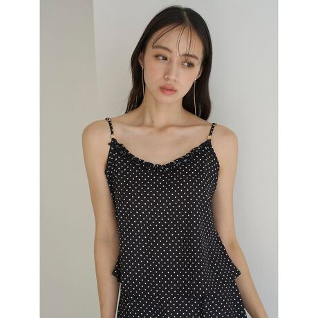 <b>【艶やかなサテンライクな生地感がニュアンスをプラスするフリルトリムキャミソール】</b>