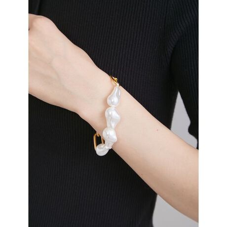 <b>【バロックパールと大きめチェーンが、ダブルで映える。モダンでスタイリッシュなブレスレット】</b>