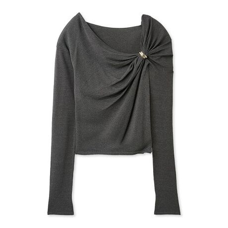 <b>【胸元のメタルパーツでドレープを効かせたトレンド感のあるニットプルオーバー】</b>