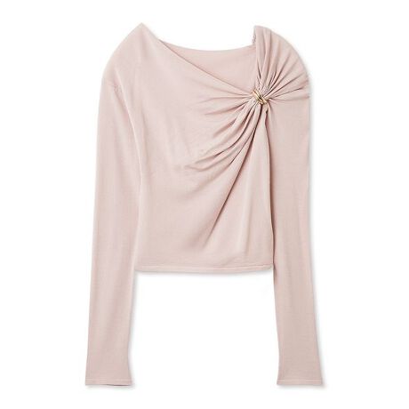 <b>【胸元のメタルパーツでドレープを効かせたトレンド感のあるニットプルオーバー】</b>