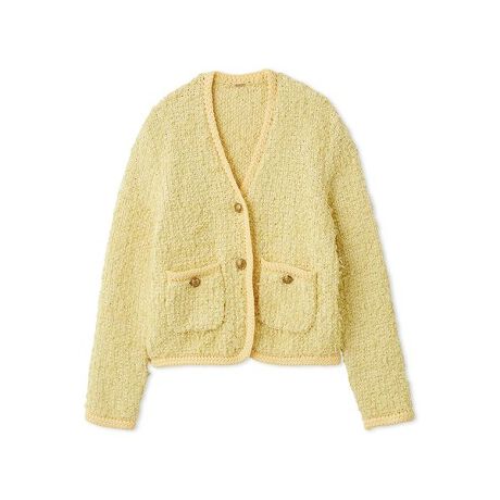 <b>【まるでツイードのような、リッチなリボンヤーンニット。金ボタンとラメMIXでさらにリュクスなイメージに】</b>