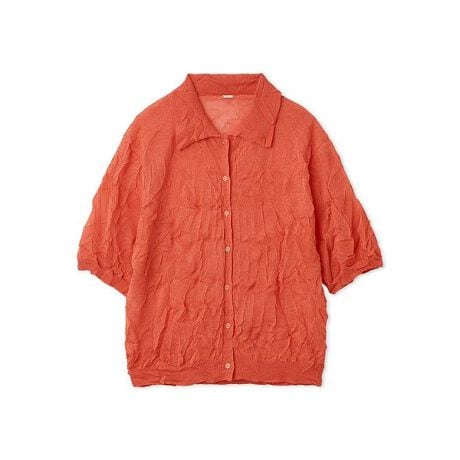 リネン混で、シアーに編み立てた素材。ワッシャー加工で肌に張りつかず、さらりとした質感で快適です。