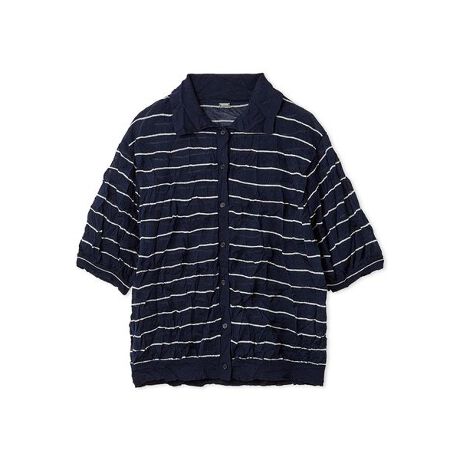 リネン混で、シアーに編み立てた素材。ワッシャー加工で肌に張りつかず、さらりとした質感で快適です。