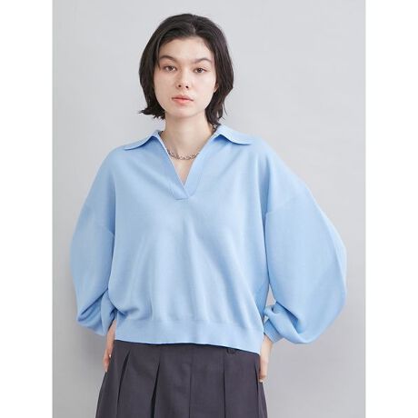 <b>【ヌケ感が出るスキッパー襟でニュアンスたっぷり。ほんのりシアーな軽さのあるポロニット】</b>