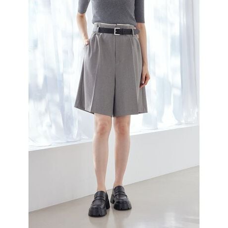 ハーフ丈のキュロットスタイルが新鮮なパンツです。ベルトループを備え、センタープレスも入った、きれいめのスタイルにも使える一枚。