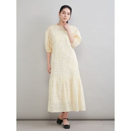 <b>【シアーな生地にフロッキープリントをオン。クラシカルに装える、バランスのよいモードなワンピース】</b>
