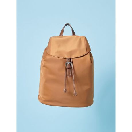 撥水加工したナイロンのバックパックは、軽くて使いやすい、大人のためのギア。ツヤ感のある素材で、高級感もあるアイテムです。