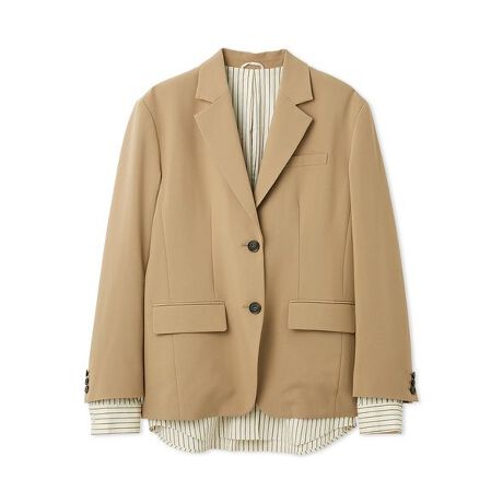 <b>【ジャケットのインに、シャツを重ねたようなデザイン。一枚でレイヤードを楽しめる、鮮度の高いアイテム】</b>