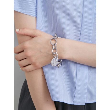 <b>【ランダムチェーンと、ツヤっと輝くコインモチーフが手元を華やかに彩る、ニュアンスのあるブレスレット】</b>